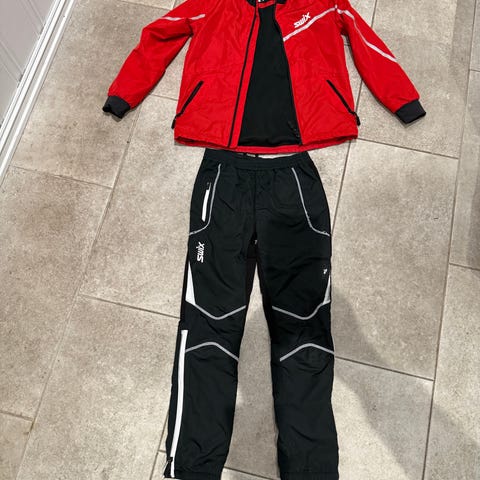 Selger alt samlet for kr 1500,- se pris på bilde for pris pr del. Swix langrenn jakke og bukse. Fleece jakke og mellomlags genser. Alt str 140. Hansker og votter str 5.