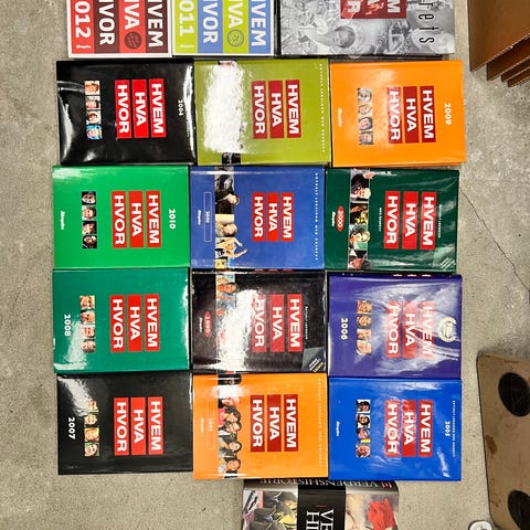 Hvem Hva Hvor bokserie med ulike årganger fra 1964 til 1985Inneholder flere bind med varierende farger og design på omslaget. Serien dekker forskjellige år og gir informasjon og fakta fra disse periodene.