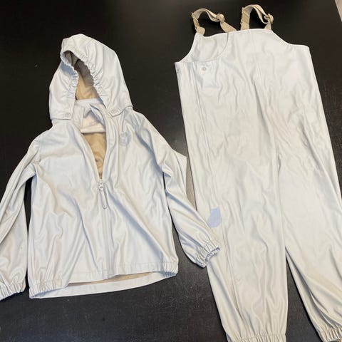 Vanlige bruksmerker. Jakken ser nesten ny ut. Ble bare brukt hjemme, ikke i barnehage.