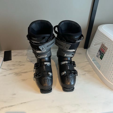 Atomic Hawx 2.0 skistøvler i størrelse 27, i fargene svart og rød. Skistøvlene har fire justerbare spenner for tilpasning og støtte. Egnet for bruk i alpinski.