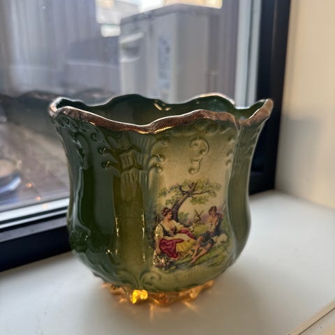 Liten krukke og blomster holder fra Pretty Ugly Pottery, Wales.