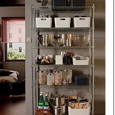 De har stått på stue/kjøkken og er plassert oppå hverandre, slik at det er én høy hylle.