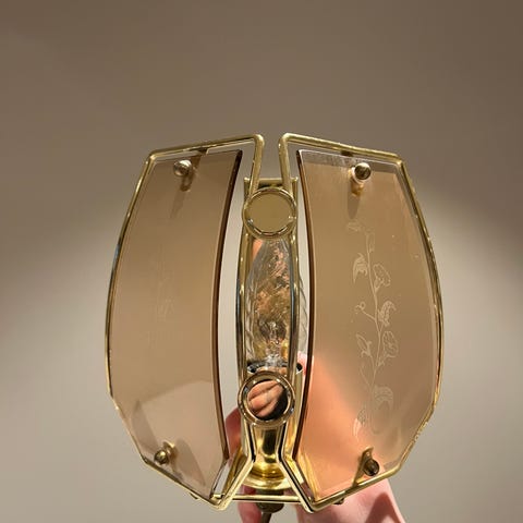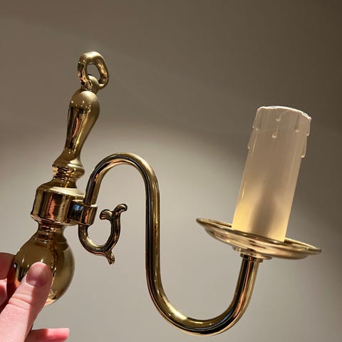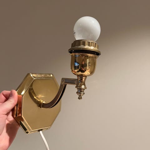 Selger en nydelig vintage vegglampe/ lampett med messing og prismer. Fungerer som den skal. Stikket er ujordet. Ledning «ryr» litt, da den er en eldre lampe.