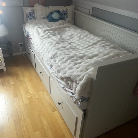 SUNDVIKUttrekkbar juniorseng m ribbebunn, hvit, 80x200 cm