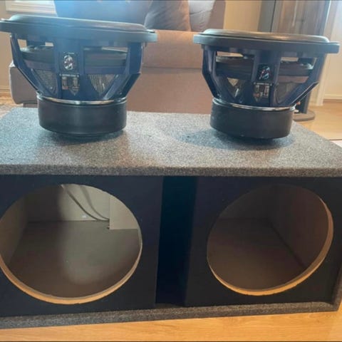 Ground Zero bilforsterker 1 kanals fungerer helt fint. Poison Audio subwoofer 2x12 fungerer helt fint den ene lukter lit svid vist du presser dem hardt