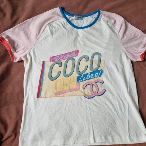Unik Chanel T-skjorte med F1-inspirert motiv og detaljerte applikasjoner. En skikkelig statement-piece med broderier, perler og farger – perfekt for deg som liker noe litt utenom det vanlige.