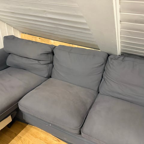 Sofaen er hel og fin, fast å sitte på. Må hentes.
