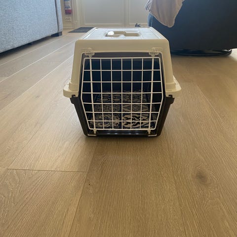 Brukt kun når vi hentet katten vår som er en innekatt, ellers er det aldri brukt og selges billig.