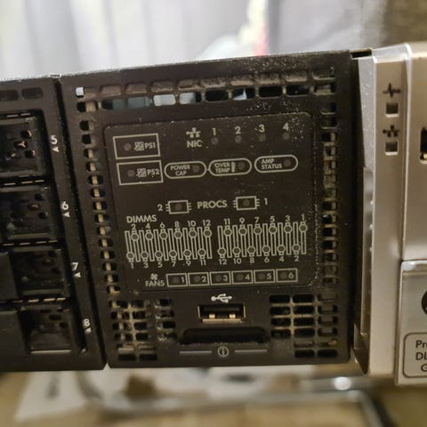 Brukt server til salgs. 2x E5-2620 v3 CPU, Ingen minne, Ingen disk. P440i kontroller og 8x2.5" cage.