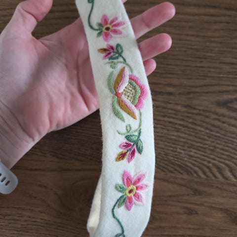 Selger en nydelig brodert hodeplagg til Lundeby bunaden. Aldri blitt brukt noen gang