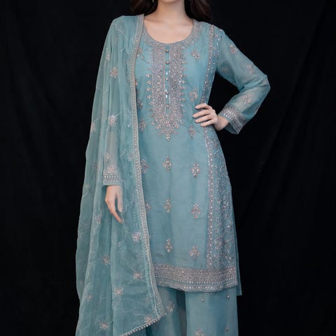 Mint green light green valvet luxury dress with pearls and embroidered