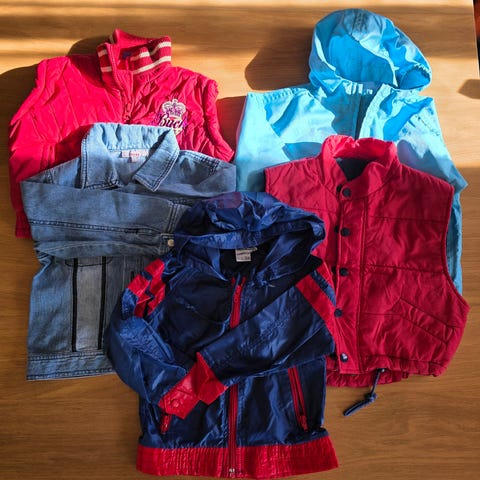 Pent brukt klespakke med tre ytterjakker til jente str 86/ 92