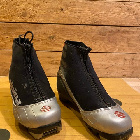 Lytess skisko i størrelse 40. Gode, brede skisko. Normal størrelse. Noe foring inni skoene.