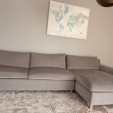Sofa har to merker på venstre armlene. Se bilder og tekst under bilder.