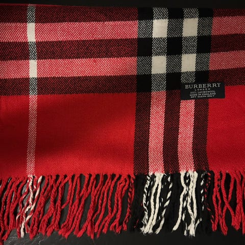 Autentisk Burberry-skjerf laget av 100 % lambswool med klassisk rutemønster.