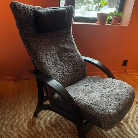 Ønsker å kjøpe en brukt stol lik denne med krakk.