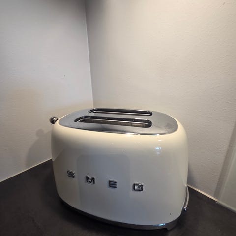 Smeg brødrister i lys blå farge. Kommer med to stk toastjern som ekstrautstyr.