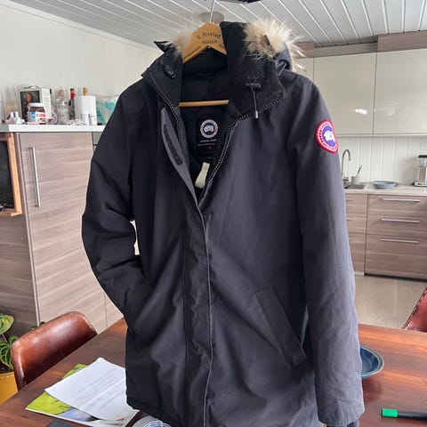 Canada Goose Annet yttertøy for dame i størrelse M. Jakken er svart og laget med dun som materiale. Den er designet for å gi varme og komfort ved kaldt vær.. ved hurtig svar så trekkes 500kr