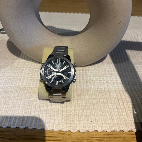 Casio unisex klokke med digitalt display og rød rem. Klokken har robust design og er egnet for daglig bruk.