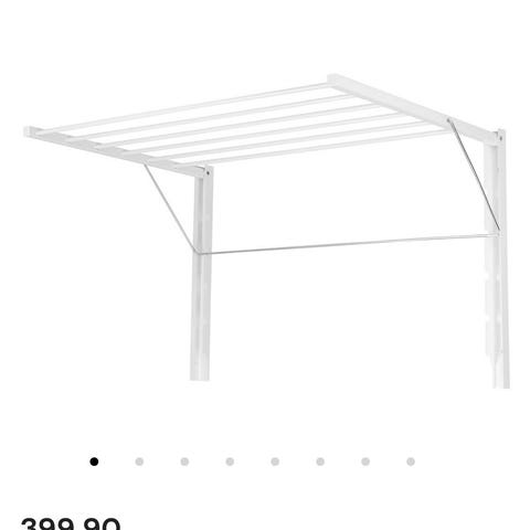 Veggmontert tørkestativ fra Foxydry. Vi kjøpte to stk, men endte med å bare bruke en av de. Den andre ligger fortsatt i pakken, ubrukt.