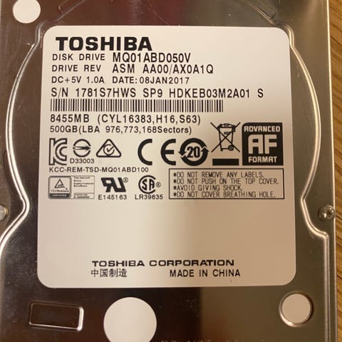 Toshiba MQ01ABD050 2.5" harddisk 500GB