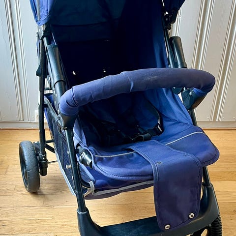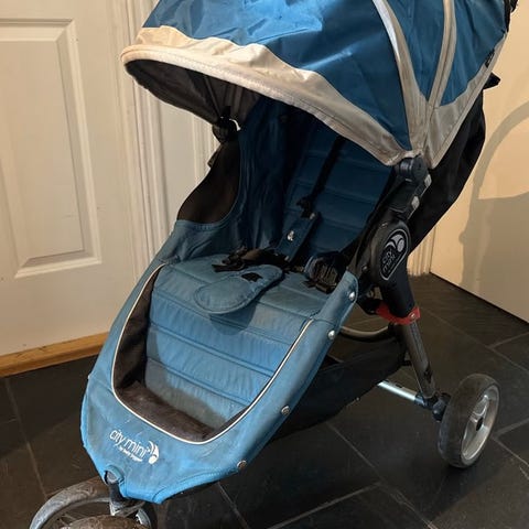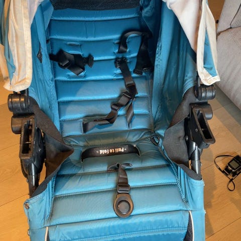 Britax Smile barnevogn i blå farge. Barnevognen har en komfortabel sitteplass med polstring, sikkerhetssele og justerbart håndtak. Egnet for barn og designet for å gi god støtte og beskyttelse under bruk.