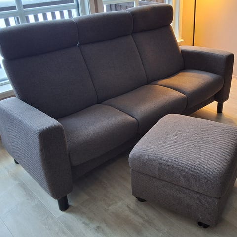Toseters fra Stressless med tilhørende puff/bord. Ryggene kan legges ned individuelt.