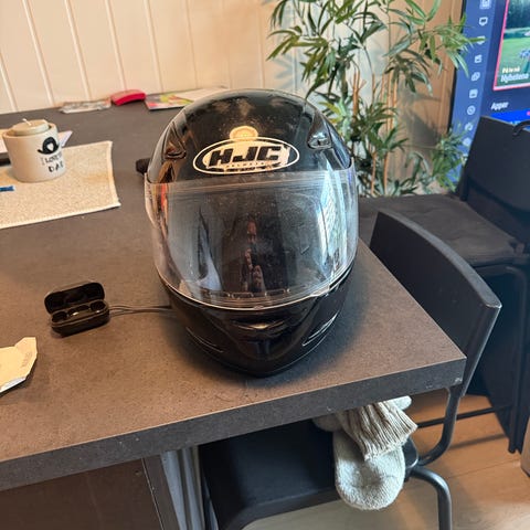 HJC motorsykkelhjelm i svart farge. Hjelmen har en heldekkende design med visir for beskyttelse av ansikt og øyne. Egnet for bruk ved motorsykkelkjøring.