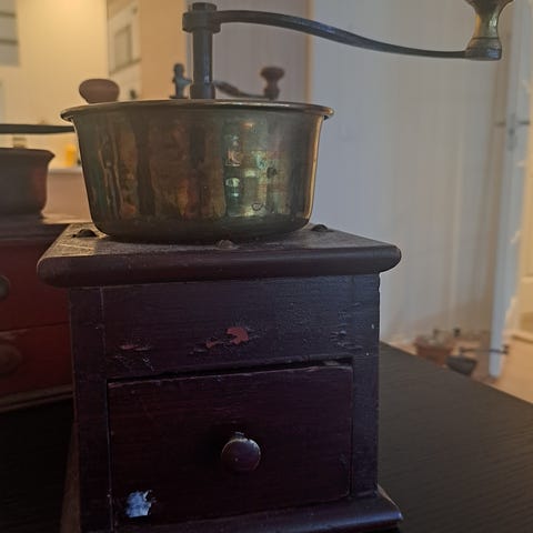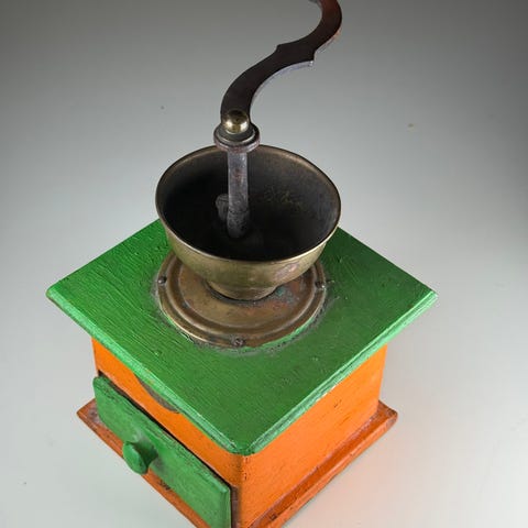 Kaffekvern i tre og metall