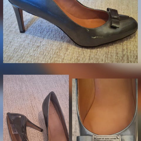 Marc Jacobs ankelboots med høy hæl i størrelse 40. Skoene har glidelås på innsiden og en tykk hæl. Materialet er skinn. Designet er enkelt og passer til ulike anledninger.