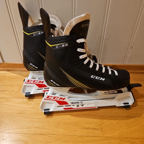 Ishockeyskøyter Toronto for barn i størrelse 33 med svart og hvitt farge. Skøytene har tradisjonell snøring for justering. Lite brukt