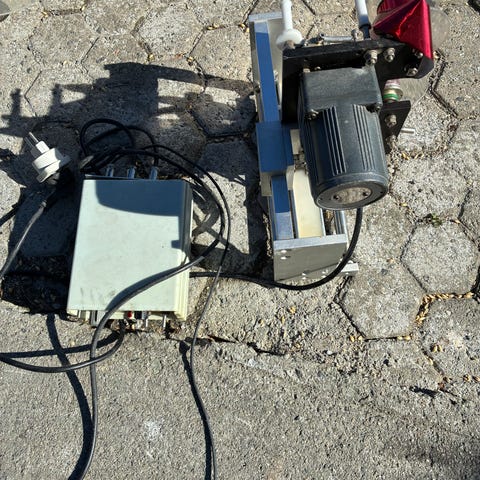 Motor med kontrollboks og nødstoppsbryter. Motoren på 3,4 kw