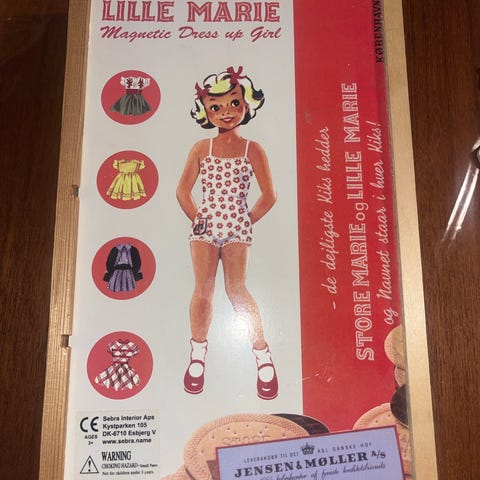 Papir dukke med masse klær og en liten fortelling til