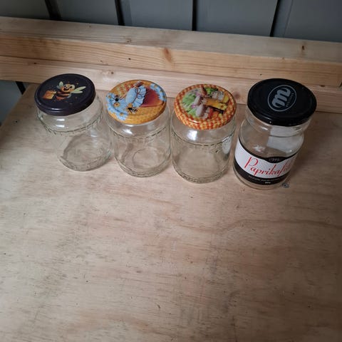 RESERVERT! Glasskrukker med korklokk 19 stk selges. 10 kr for hvert glass.