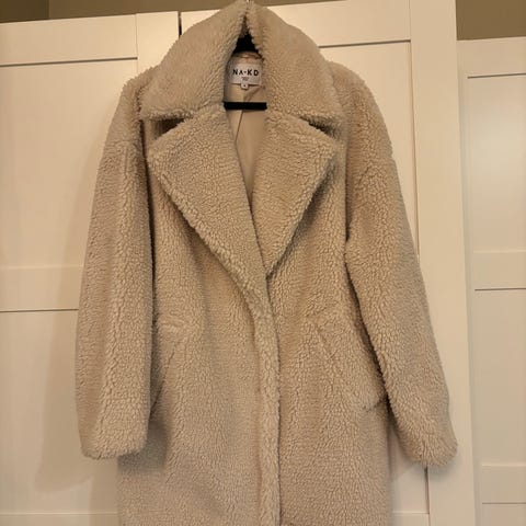 Splitter ny NA-KD lys beige kåpe i ullblanding med skjerf. Størrelse 40.