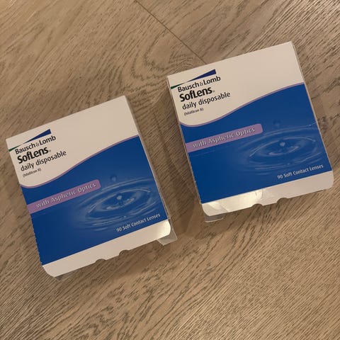 Kontaktlinser, månedslinser, Air Optix plus HydraGlyde fra Alcon, styrke -7,25. To uåpnede pakker med 6 linser i hver. Utløpsdato okt. 2029.