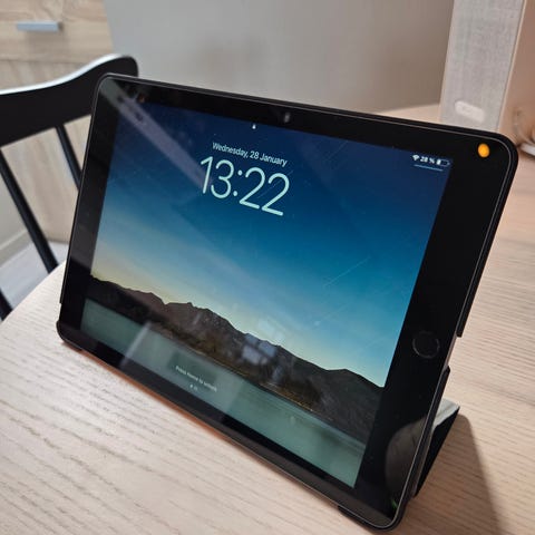 iPaden fremstår som ny, foruten en liten ripe i rammen rundt skjermen. Må lete for å finne den og den påvirker ikke bruk på noen måter. Se bilde i annonsen.