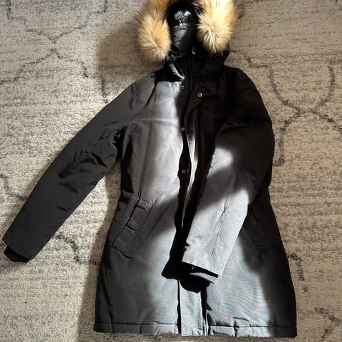 Svea Annet yttertøy i fargen svart, størrelse XS for dame. Jakken har hette og er designet for utendørs bruk.