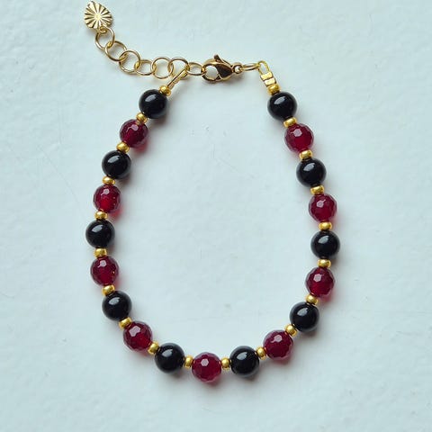 Søkeord: onyx, onyks, halvedelsteiner, naturmaterialer, naturstein, armbånd, smykker, perlearmbånd, steinperler, glassperler