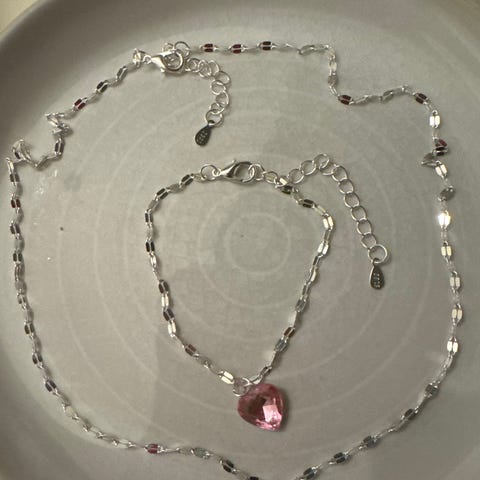 Ubrukt dråpeformet smykkesett i sølv og Zirkonia stener.