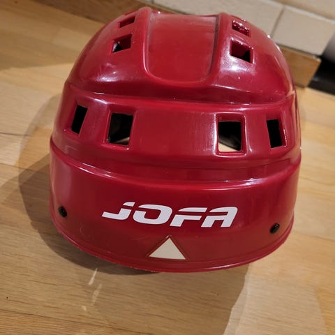 Jofa hjelm for barn, størrelse 49-56. Den er utstyrt med polstring for beskyttelse og komfort under bruk.