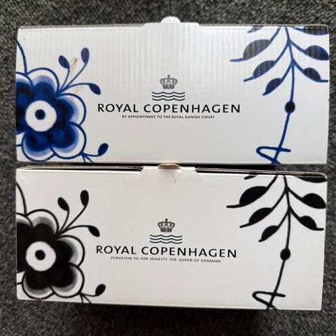 Ubrukte. Håndmalte. Tåler mikrobølgeovn og oppvaskmaskin.