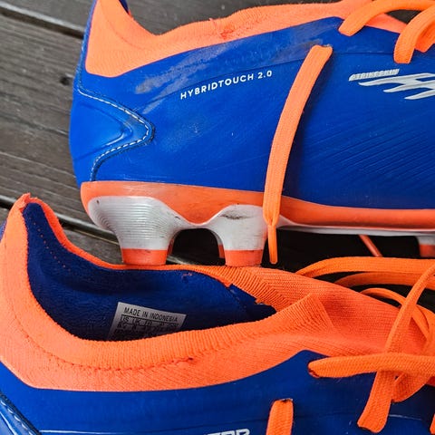 Adidas fotballsko i rød og svart farge, designet for herre. Skoene har snøring og er laget med materialer som gir støtte og komfort under fotballspill.