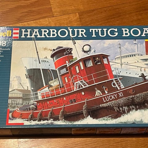 Heller Renault TN6. Paris berømte bussar. Hjørner på eskelokk er ikke strøkne. Alt er i eska. Eit interessant byggesett, av historisk buss.