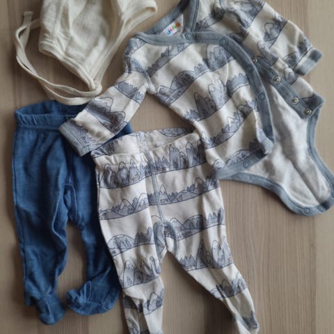 Pent brukt omslagsbody i ull og bambus fra Reflex. Størrelse 68