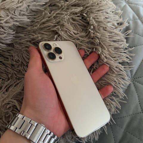 Selger Apple iPhone 13 mobiltelefon med 128 GB lagringskapasitet i fargen hvit. Ingen synlige bruksmerker