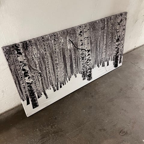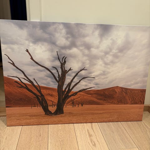 Innrammet bilde, størrelse 70×70. Jeg tror den er kjøpt på IKEA.