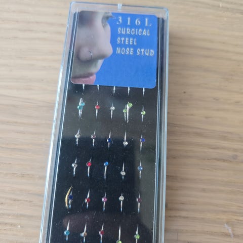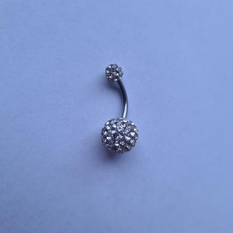 To stykk Helt Nytt Uåpnet Surgical Steel Navlepiercing i rustfritt stål med hengende detaljer i form av mynter og slanger. Settet inkluderer flere par med ulike design. Materialet er kirurgisk stål, som er kjent for å være hypoallergent og motstandsdyktig mot korrosjon.