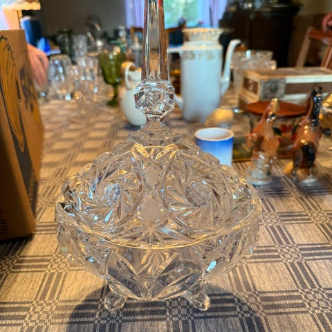 Krystall bolle med dekorativt mønster i klart glass. Bollen har en rund form med innslag av blad- og bølgemønster. Egnet for servering eller dekorasjon.