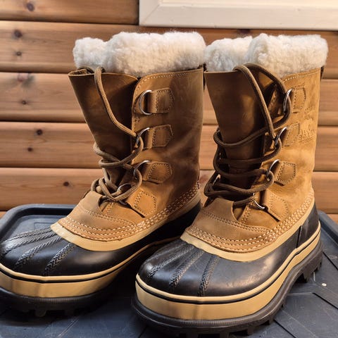 Sorel Caribou Reserve støvler i størrelse 37. Støvlene er brun og svart med vanntett materiale og fleecefôr, egnet for kalde og våte forhold. Designet for kvinner med isolasjon som tåler temperaturer ned til -40 grader Celsius. Aldri brukt